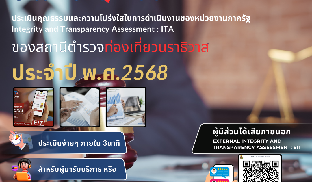 ขอเชิญชวน ผู้มารับบริการ / มาติดต่อ สถานีตำรวจ ร่วมประเมิน แบบวัดการรับรู้ของผู้มีส่วนได้ส่วนเสียภายนอก ประจำปี พ.ศ.2568