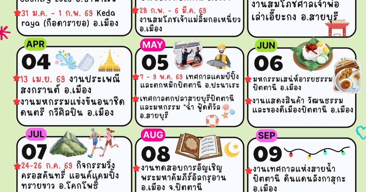 มาแล้วค้าา ปฏิทินท่องเที่ยว ยะลา นราธิวาส ปัตตานี ปี 2569