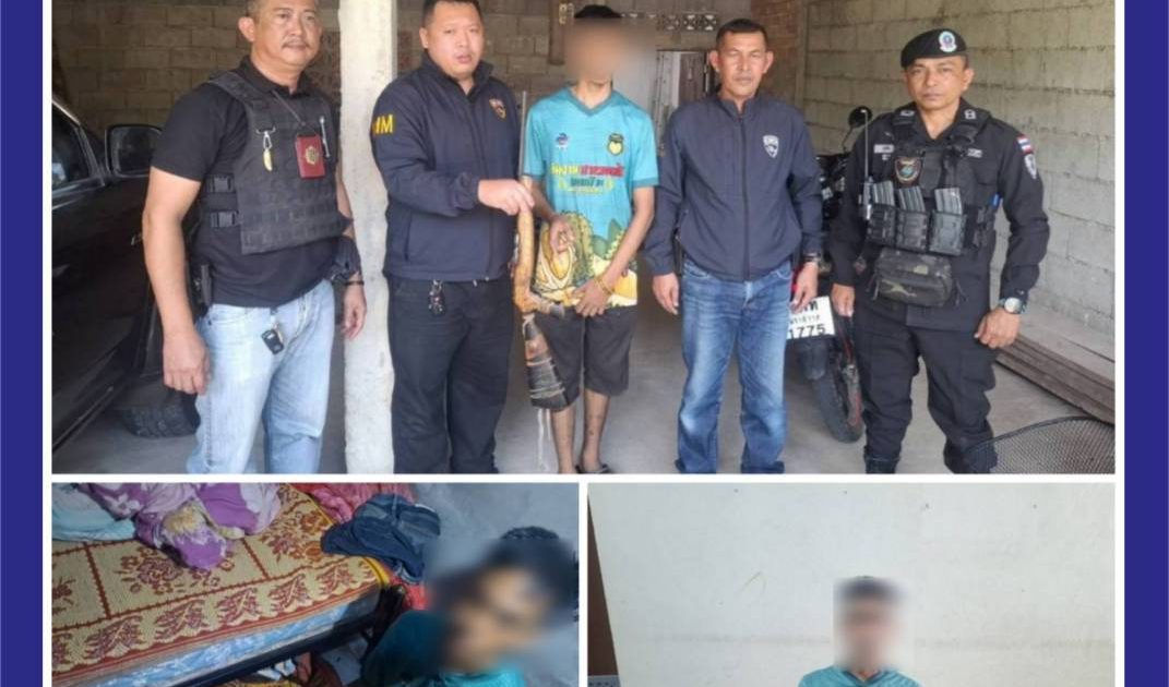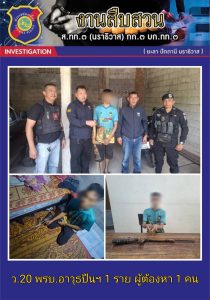 พร้อมด้วยของกลาง -อาวุธปืนยาวไทยประดิษฐ์ ขนาด .22 จำนวน 1 กระบอก