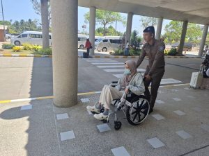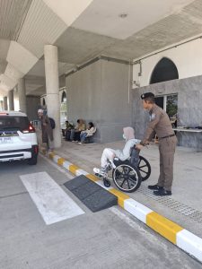 พ.ต.ท.ณัฐวรรธน์ สงคง สว.ส.ทท.3 กก.3 บก.ทท.3 มอบหมายให้ ด.ต.อารีส อภิชาติ ผบ.หมู่ ส.ทท.3 กก.3 บก.ทท3 ปฏิบัติหน้าที่ ดูแล รักษาความปลอดภัย และอำนวยความสะดวกให้แก่ประชาชนและนักท่องเที่ยว ได้อำนวยความสะดวกให้กับผู้โดยสาร(ผู้ป่วย)ไม่สามารถเดินได้ จึงนำผู้โดยสารไปยังจุดรับ-ส่ง ผู้โดยสาร เพื่อเดินทางกลับบ้านด้วยรถยนต์ ต่อไป ณ ท่าอากาศยานนราธิวาส อ.เมือง จ.นราธิวาส