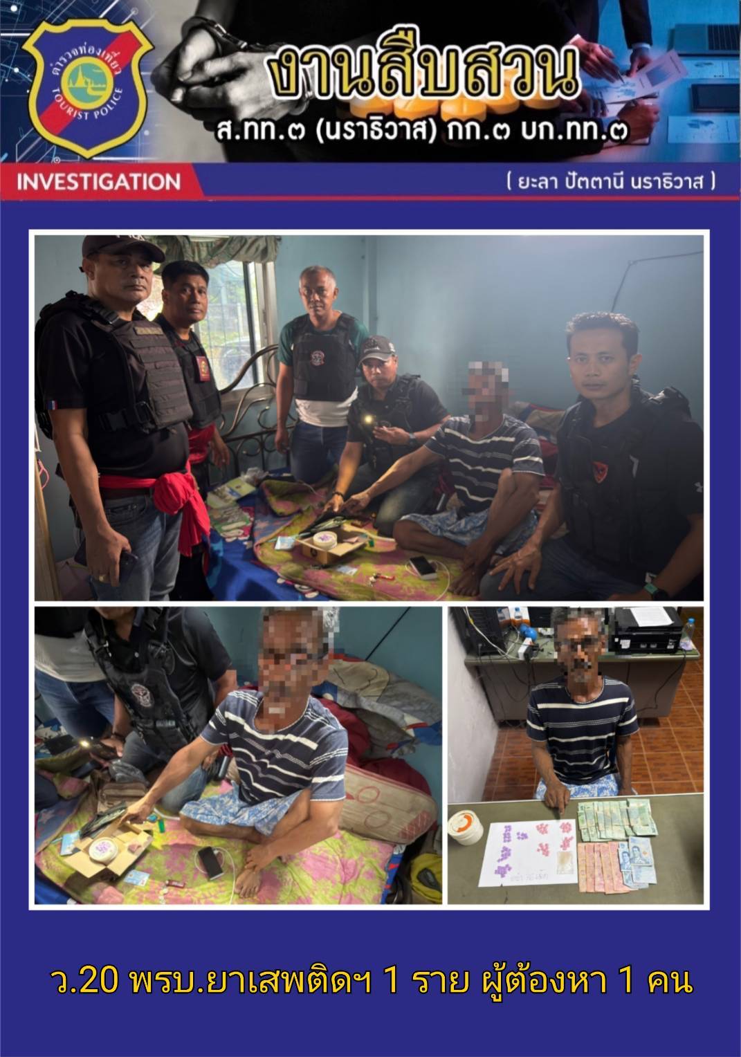 ส.ทท.3 กก.3 บก.ทท.3 (ปัตตานี, ยะลา, นราธิวาส) ขอรายงานผลการจับกุม วันที่ 20 เมษายน 2569 ดังนี้ภายใต้