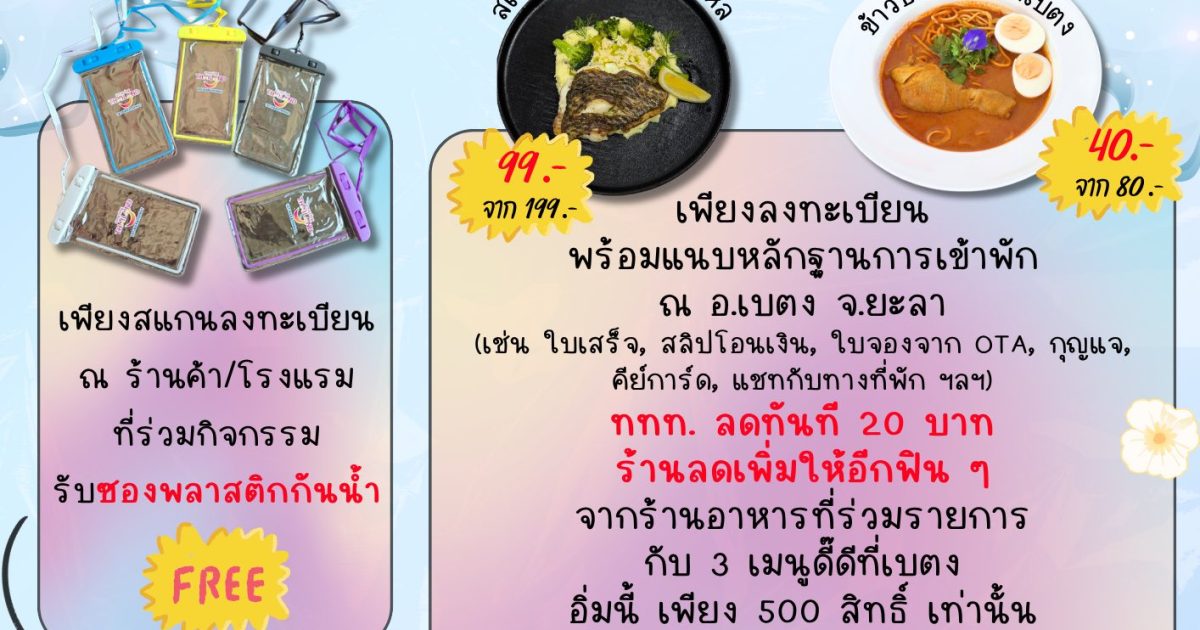 เพียงสแกน QR Code ลงทะเบียน พร้อมแนบหลักฐานการเข้าพัก ณ อ.เบตง จ.ยะลา